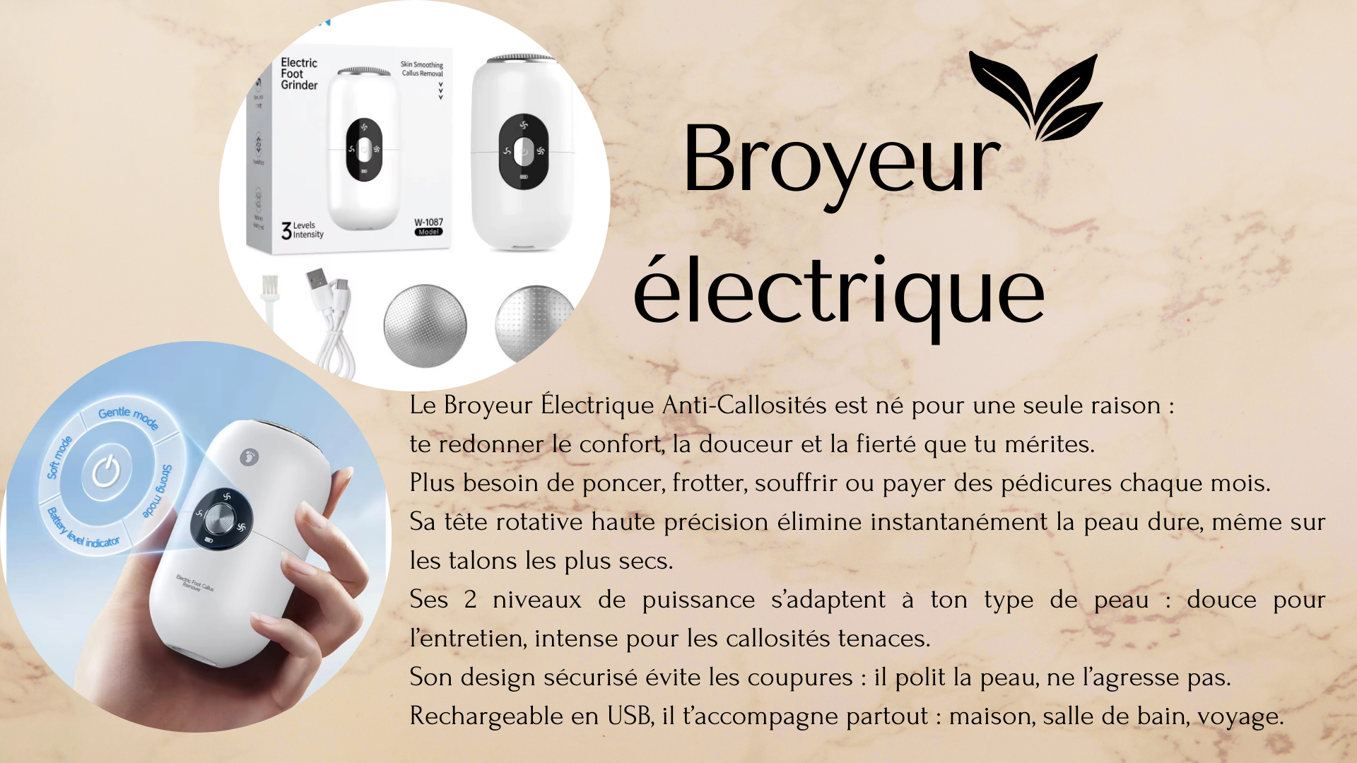 Broyeur électrique anti-callosités _ Rechargeable