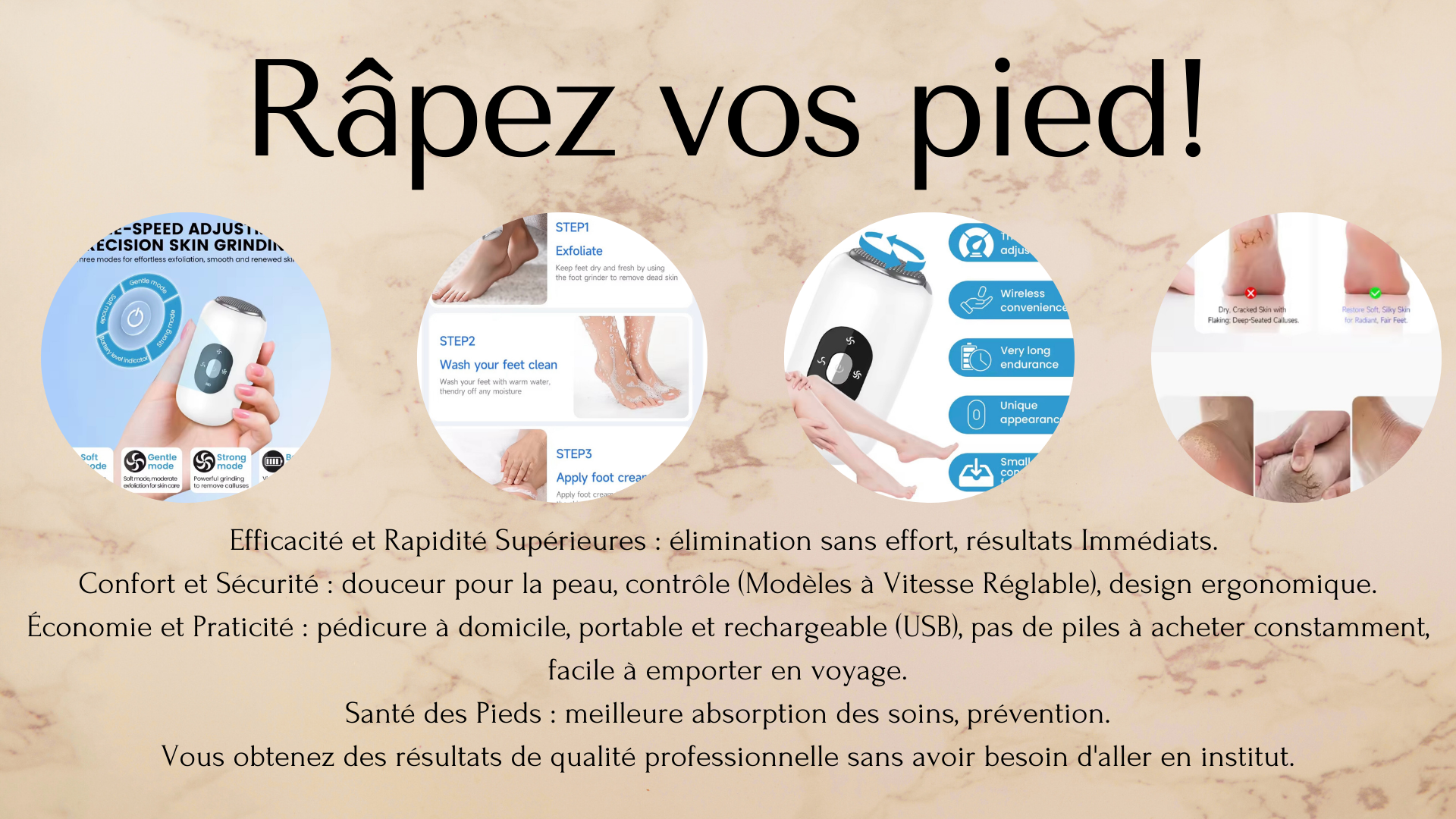 Râpe électrique _ anti-callosités _ Pieds Doux Instantanément | Portable | Rechargeable & Puissant