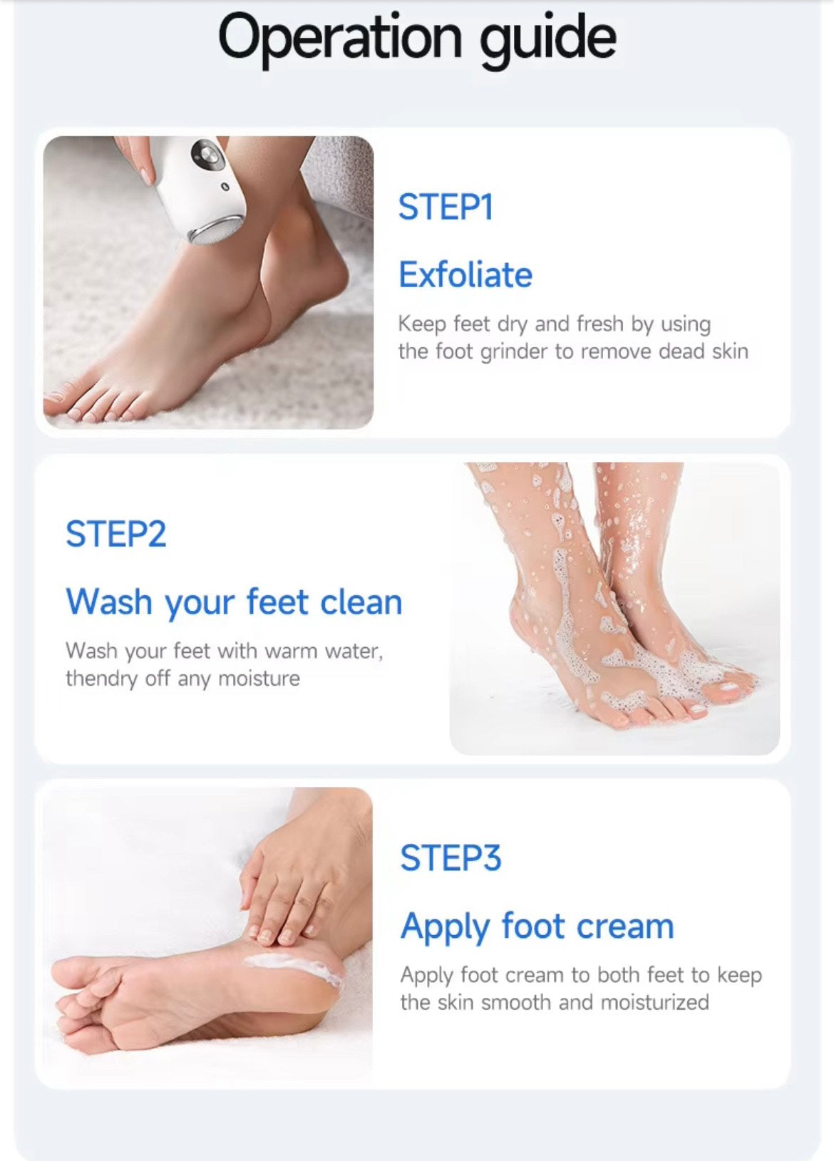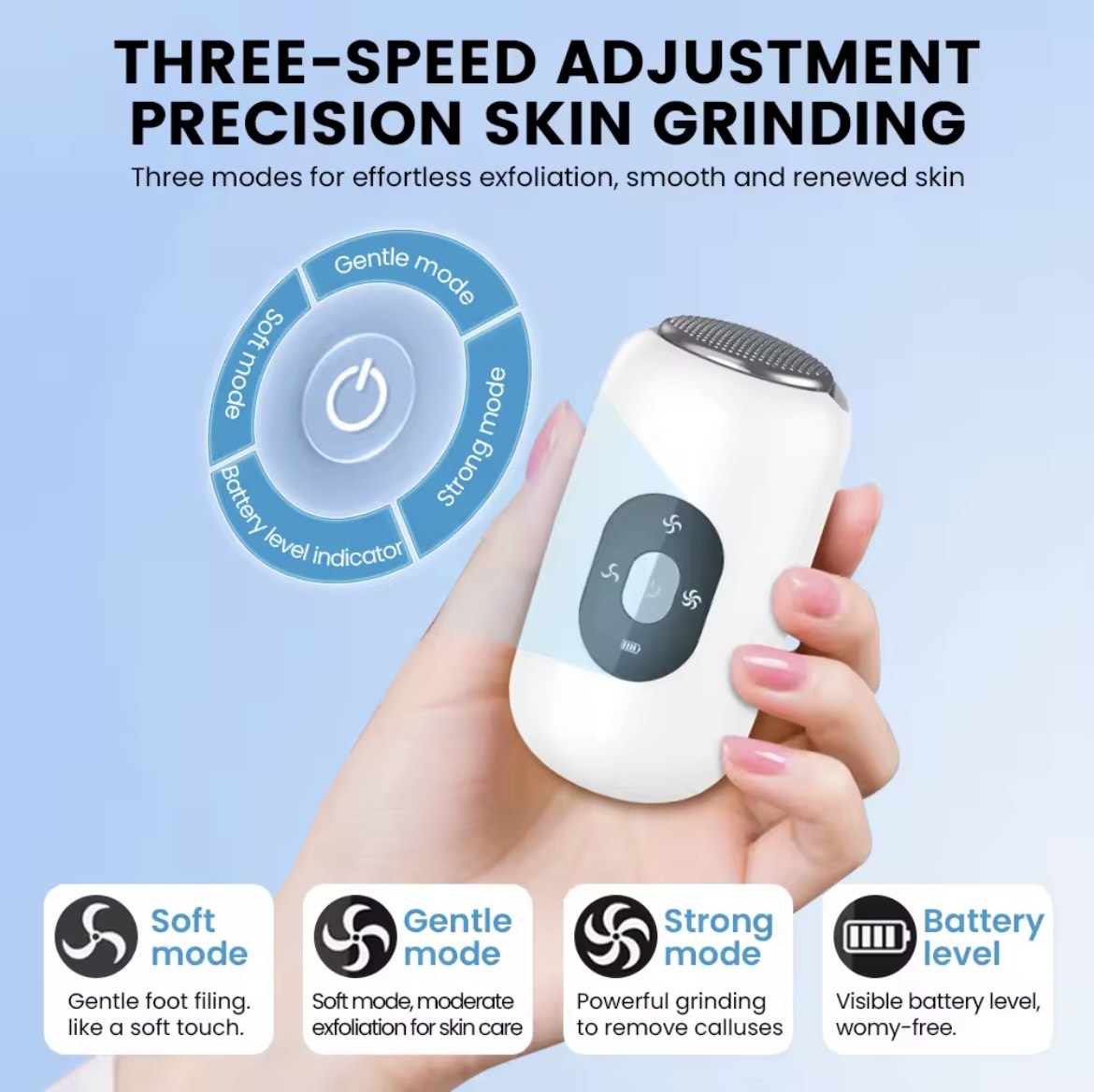 Prenez soin de vos pieds facilement avec notre Broyeur Électrique Anti-Callosités, l'appareil indispensable pour retrouver des pieds doux, propres et lisses sans aller en salon. Grâce à sa tête rotative haute performance, il élimine en douceur la peau dure, les callosités et la rugosité des talons. En quelques secondes, vos pieds retrouvent un aspect net et soigné. Compact et rechargeable en USB, vous pouvez l'utiliser chez vous, en voyage ou avant de sortir. Sans douleur, sans effort, et surtout sans danger pour la peau. C'est l'outil idéal pour garder des pieds toujours impeccables pendant toute l'année.